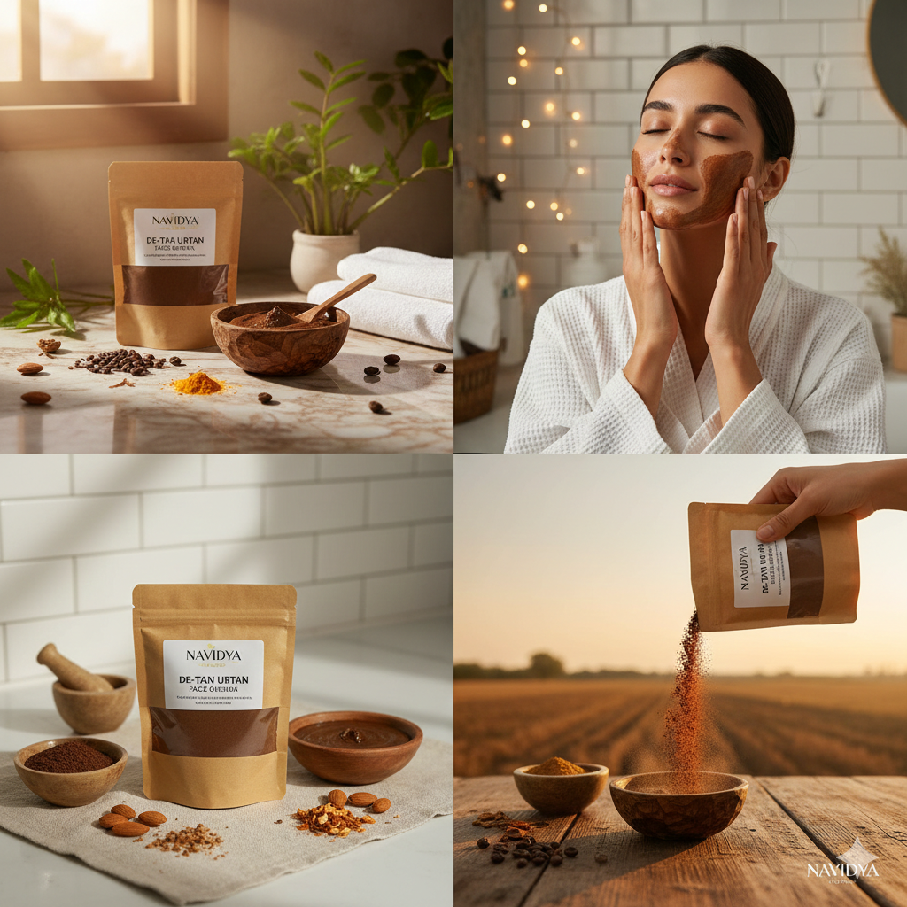 Transform your skin with NAVIDYA’s De-Tan Ubtan, an authentic Ayurvedic powder crafted for a radiant, even-toned glow. This herbal blend combines mulethi (licorice) to brighten and soothe, besan (gram flour) for gentle exfoliation, flaxseed to nourish and hydrate, nagarmotha (nutgrass) to even skin tone, and manjistha (Indian madder) to purify and reduce pigmentation. Free from chemicals, this vegan formula removes tan, dirt, and dead skin, unveiling a luminous complexion. Mix with rose water or yogurt for a smooth paste, apply, and rinse after 15-20 minutes for soft, glowing skin. Perfect for all skin types, especially sun-exposed or uneven skin.